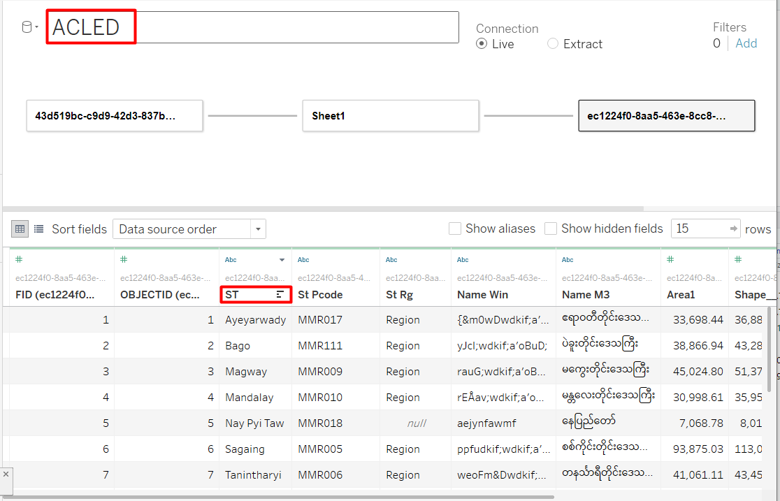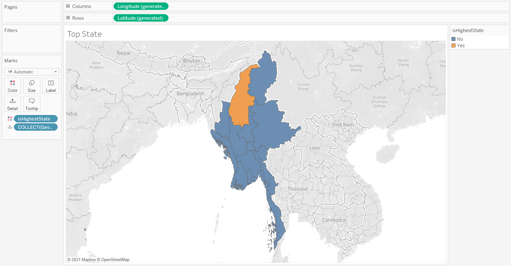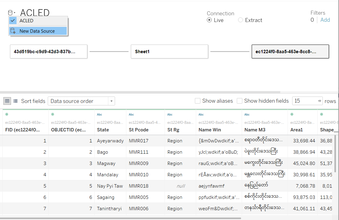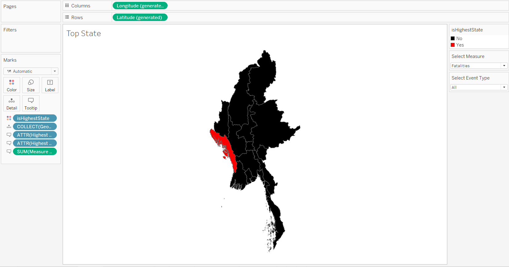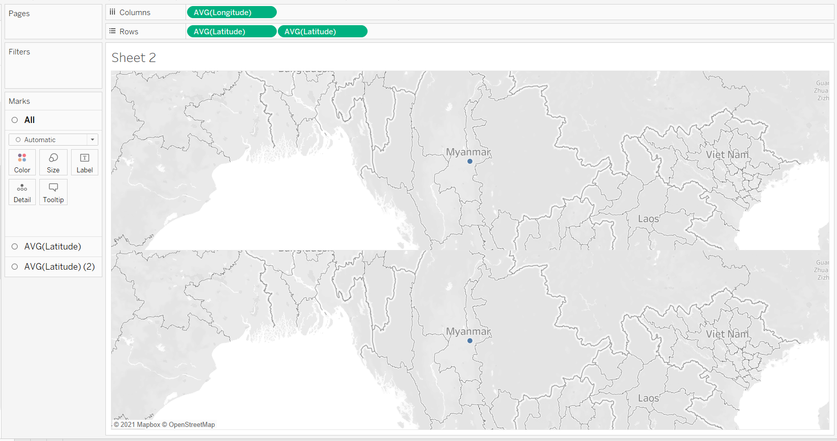 Do not use the default map background from Tableau but use the shp file for Myanmar to provide the map background (2).