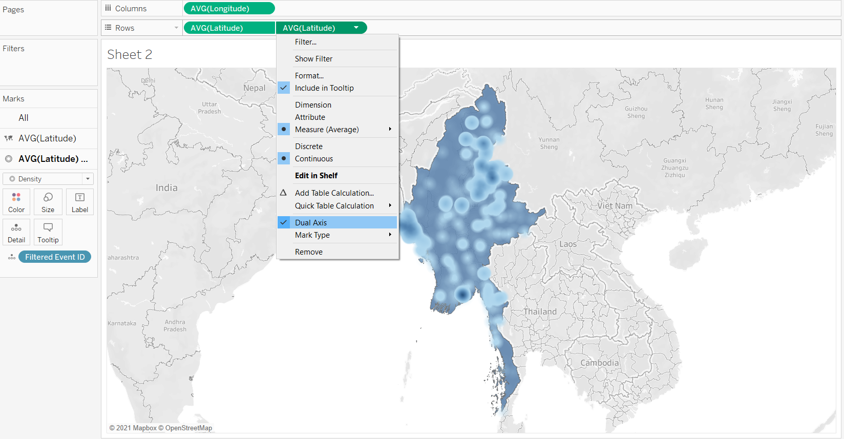 We need a dual axis to create the density map if we want to remove all background maps. We will only use the National Boundary as the background map.