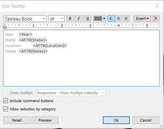 We want to make the tooltip more informative, so we need to add the fields to the Tooltip on the Marks Card first.