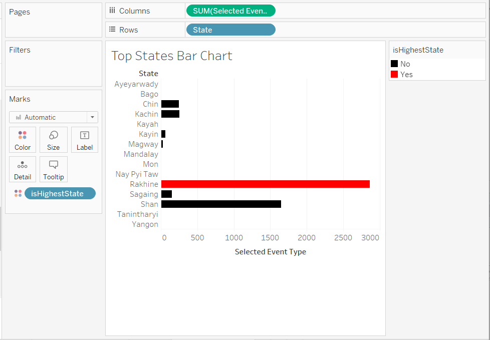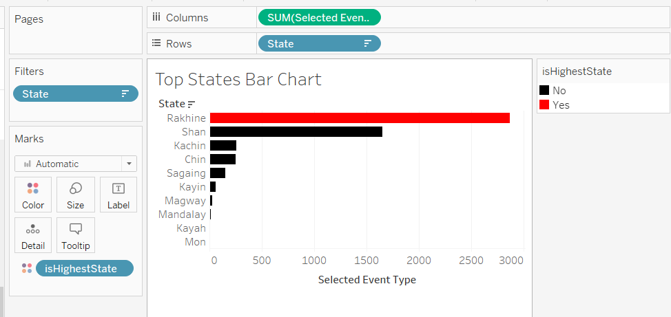 For this visualisation, we will use the State and Boundary as the Background map and highlight the state with the highest sum of measure using a red colour. The steps to highlight the max value is inpired by Rahul (2017) and Tableau Knowledge Base(2017). As with the previous visualisations, we need to create a calculated field first.