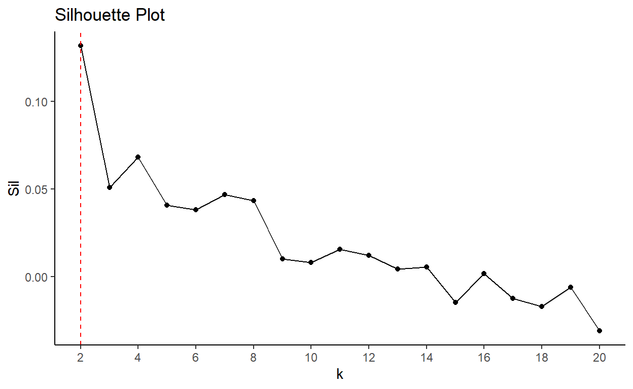 While for a partitional clustering, the dendrogram will be replaced by a silhouette plot as shown below.